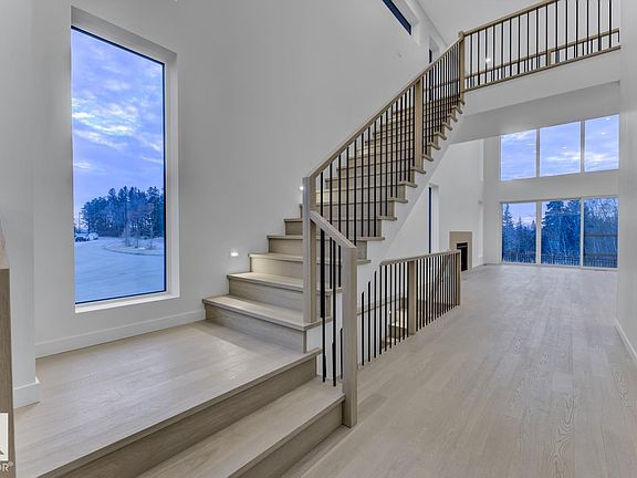 Something rare is taking shape along Whitemud Creek Ravine in SW Edmonton, The Cove, an intimate enclave of just 7 estate homes at the end of a secluded Chappelle lane, thoughtfully planned as a bareland condo community. Wrapped in trees & uninterrupted green space, w/ walking trails leading directly into the river valley, it feels quietly exclusive & retreat-like, yet remains minutes to amenities & roughly 15 minutes to the airport. A SUiL Management vision brought to life by Platinum Living Homes, Design Two Group & Brianna Hughes Interiors, this modern West Coast–inspired residence offers an O/S triple garage, nature-backed lot, open-to-above great room w/ iron staircase & fluted, quartz-trimmed F/P, a sleek kitchen w/ slab-front cabinets, quartz waterfall island & W/I pantry, & a flexible main-floor office/den/bedroom. Upstairs, a ravine-facing primary suite w/ spa ensuite & W/I closet anchors the home. Landscaping & snow removal are managed for a true lock-and-leave lifestyle in a ravine setting.