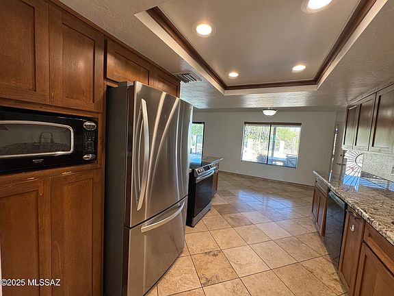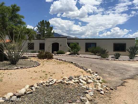 Stunning Santa Fe style home nestled in the heart of Tucson, AZ. This spacious property boasts 4Bdms 2Ba, making it an ideal choice for those who value comfort and space. Large and open floorplan, with two living rooms and two dining areas, perfect for entertaining or simply enjoying a relaxed lifestyle. The travertine tile adds a touch of elegance and durability to the home. The property also includes a large covered patio and an attached 2 CG, providing ample space for vehicles and storage. The nearly one-acre lot is home to a large pool and spa, offering a private oasis for relaxation and recreation. The circular driveway adds a touch of sophistication and convenience. One of the standout features is the beautiful views and stunning sunsets, making it a truly special place to call home