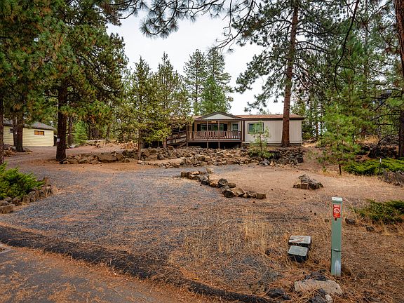 Looking for a starter home or investment in Bend that you can park your RV at? Well, you have found the place. This adorable 1999 manufactured home sits in a beautiful and spacious (.23 acre) lot adorned with giant trees, large rock outcroppings and native plants. Lightly lived in the past year, the home was recently updated with exterior paint on the front of the home and an awesome paver patio out back. 3 bedrooms, with the primary separate from the guest bedrooms & 2 baths with an office/flex room make this floorplan extremely functional and ready for its next owner. A covered carport abuts the home helping keep the weather off your daily driver and a ramp leads into the home if you desire easier access. Location makes it easy to get into and out of town quickly. Romaine Village has an optional HOA that you may join, but it is not required. Easy to show. Book your appointment today!