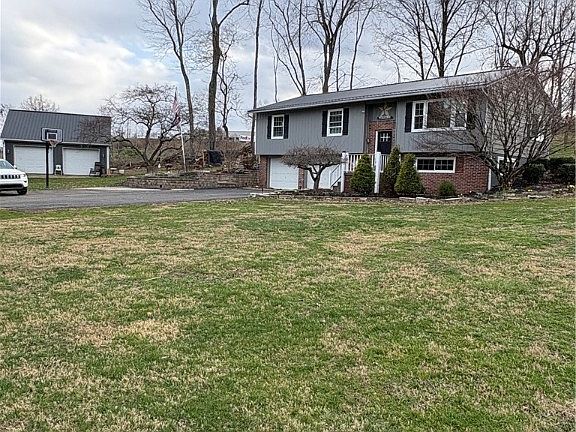 Welcome home! This move-in ready 3 bd, 2 ba home is situated on a full 1.475 acres conveniently located only moments from town. Privacy is provided by the mature pine trees at the entry of the property. The split level layout provides plenty of space with ample living space on the main level and a finished basement area with extra living room, cozy fireplace, large laundry room, and second full bathroom. Attached oversized two car garage with room for additional storage within the basement. The large remodeled kitchen is open to the dining area and large living room - perfect for hosting friends and family. Exit the french doors from the kitchen to a splendid fully screened covered back deck. Enjoy the peacefulness of watching the birds from the rear deck with room for a dining set and additional seating. Exterior fire pit ready for s'mores and more! Extra detached two car garage - allowing for four garage spaces total at this property. New Improvements include new roof to the home and garage; new furnace; windows throughout; french drains; updated electrical wiring; totally remodeled kitchen; with newer flooring throughout. Schedule your showing today!