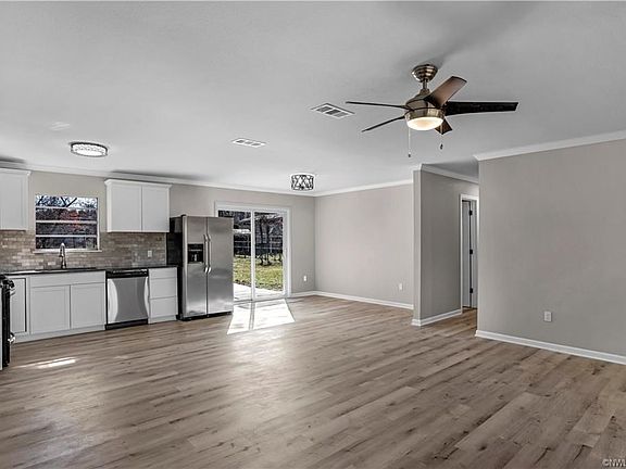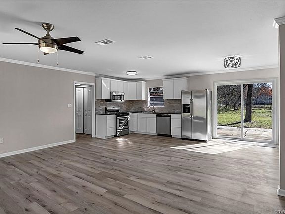 This beautiful home situated on .76 acres has been completely renovated throughout. Featuring a spacious open floor plan, this home also boasts contemporary and stylish design and finishes with new wood look laminate flooring, new carpets in the bedrooms, fresh modern paint colors throughout, new bathroom vanity, and light fixtures. The updated kitchen features sleek granite counter tops, new cabinetry, stainless steel appliances, and undermount stainless steel sink. The spacious backyard offers a large storage shed with the entire property being surrounded by mature trees.