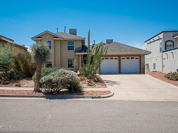 The house has been painted in neutral colors, and updated photos will be uploaded as soon as possible.. Welcoming 5-bedroom home with two bedrooms and a full bath on the main level. Enjoy two bright, spacious living areas, one tucked away for privacy. The chef's kitchen offers abundant cabinets, generous counter space, double ovens, and hot water on demand. Outdoors, a poolside pizza oven and breathtaking Franklin Mountain views set the stage for relaxation—the upstairs bedrooms share the same stunning vistas.
