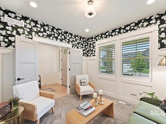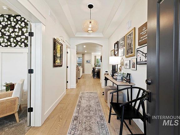 Step into a home that feels like it has a story to tell! With 4 bedrooms plus a downstairs den (complete with a secret door tucked into the wainscot trim—shhh!), there’s room for everyone and a touch of magic. Thoughtful wallpaper & charming light fixtures sprinkle personality throughout, while custom plantation blinds add elegance & versatile light control to every room. The primary suite spoils you with a dreamy deep soaker tub & a fully tiled walk-in shower. The garage is more than just a garage—it’s a year-round hideout with epoxy floors & is heated/cooled by a powerful 3-ton mini-split, perfect for game nights or weekend projects. And for adventurers, the attached RV garage (10’5” x 41’) with its 8x10 automatic door is ready for all your toys. Community pool, ample green space, winding walking paths & Meridian’s Discovery Park is across the street. A short drive provides easy access to Meridian Road, the new Meridian Library - Pinnacle, and the upcoming Costco, making errands & entertainment a breeze.