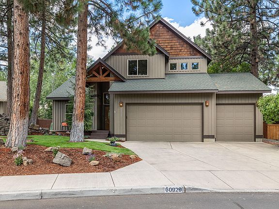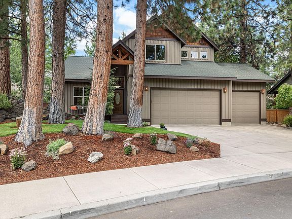 Extreme Pride of Ownership shines throughout this wonderful ''Mountain Pines'' neighborhood home, running alongside Bend Golf & Country Club. A true Pacific NorthWest style, featuring wood accents, a large vaulted great room with slate fireplace, tongue and groove wood ceilings, and a wide open floor plan that flows seamlessly between the main living areas of the home. Serene natural light pours through the many huge windows giving a calming feeling of space and nature. A lovely guest bedroom and full bath are on the main, while the primary, 2nd and 3rd bedrooms are up. The exterior is breathtaking, showcasing a stunning view of Fairway #5, soaring Ponderosa Pines, incredible landscaping on the enormous lot, and a fabulous private backyard patio. Including an oversized 3 car garage, new interior/exterior paint, new (2020) furnace and A/C and new 30 year front and back deck, this home cannot be missed!