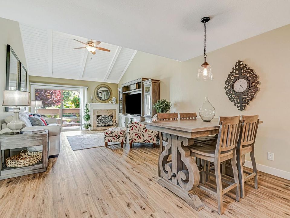 Drastic Reduction on This FANTASTIC single level villa located in the prestigious Villages Golf & Country Club, (a gated 55+ community) located in the Evergreen Hills of Silicon Valley ***** This modern condo has new flooring, all new SS appliances, Double pane windows & sliding doors with Bali vertical shades ***** Walk up to a lush lawn and landscaping (taken care of by HOA) * thru gate to your inviting front courtyard ** Open the front door (with overhead sky light) to see right thru the spacious living-room, past the landscaped back patio to the natural and lush open space where you will see deer, bunnies and birds of all kinds *** Your kitchen has custom cabinetry with granite counter tops and a window over sink with view of front courtyard * Dining area is open enough for large gatherings & the vaulted ceiling living room has large walls for art & a fireplace for ambiance, slider to your cozy & private patio with large storage shed * Primary front bedroom opens to the front courtyard and has double closets with organizer * Enjoy the decorator bathroom with custom double vanity & mirrors plus shower over a deep soaking tub * Guest bedroom or "work from home office" has a slider opening to the sunny & relaxing patio. ***** HURRY - Price just reduced !!.