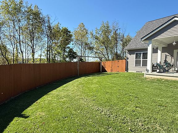 Gorgeous 3 bedroom/2 bath open concept ranch home with front porch, back covered concrete patio & new uncovered section, & fenced back yard on 5.49 acres! This home has been nicely upgraded with wainscoting, crown molding, wood burning fireplace, kitchen backsplash, upgraded appliances, cabinets in laundry room, new roof & gutters in 2024/2025 & a shed. The full basement gives additional room for storage or finish it for additional living space. The stunning foyer leads to the dining room, private office (could be a 4th bedroom) & the open great room/kitchen (cathedral ceilings) with huge breakfast bar (quartz countertops) & pantry. The large owner's suite has a walk-in closet & private bath with ceramic tile & large soaking tub.