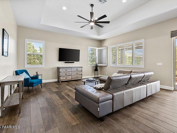 Welcome to this beautifully finished home in the sought-after community of Whispering Canyon. Thoughtfully designed and tastefully upgraded, it offers a spacious, open layout that balances comfort with functionality, ideal for everyday living as well as entertaining.At the heart of the home is a bright and inviting kitchen featuring quartz countertops, a large island, premium appliances, and generous pantry storage. The seamless flow into the dining and living areas creates a natural gathering space, with large windows bringing in abundant natural light.The split floor plan includes three bedrooms plus a versatile flex room, perfect for an office or hobby space. The primary suite offers a peaceful retreat with a spa-like bath and ample closet space. Guests will also appreciate the well-appointed additional bedrooms and baths.Outdoor living is equally inviting, with a covered patio that frames beautiful views and provides the perfect spot for morning coffee, evening sunsets, or hosting friends. The setting combines quiet surroundings with easy access to all that Prescott has to offer.Whispering Canyon is known for its scenic vistas, wide-open skies, and tranquil lifestyle making this home a wonderful place to enjoy Arizona living at its best.