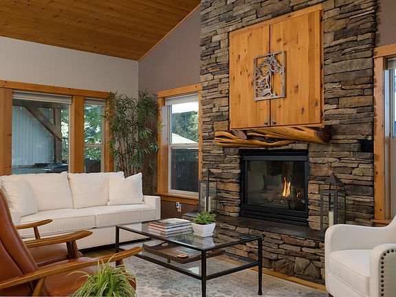 Nestled in a beautifully landscaped private setting, this stunning and spacious home is located in the desirable Mountain Pines neighborhood. Come inside to immerse yourself in a sanctuary of Northwest sophistication featuring vaulted ceilings, wood-trimmed windows, hardwood floors, and custom upgrades. The spacious great room showcases a beautiful fireplace and connects to an open chef's kitchen with stainless steel appliances and complete with an eating bar. The stunning primary suite, with large bath and an expansive walk in closet seldom seen in this price range, serves as a personal retreat, complete with exquisite finishes and ample space to relax. Hardwood floors and vaulted ceilings grace every bedroom. This home boasts an incredible laundry room, thoughtfully designed with ample storage and granite counter space for hobbies and home office. Enjoy outdoor living with the paver patio entertainment areas and a three car garage.