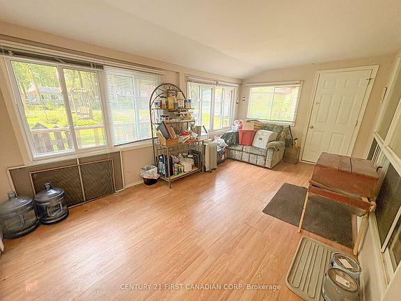 Charming 2-bedroom, 1-bath cottage just a short walk to the sandy shores of Ipperwash Beach. Perfect for seasonal getaways or year-round living, this home features laminate flooring throughout, a cozy propane stove and electric baseboard in the bedrooms for reliable year-round heating. A bright front sunroom with a side door and a spacious rear bonus room offering additional living space with direct access to the wraparound deck and backyard. Detached single-car garage, mature trees, upgraded metal roof and fibre optic internet available. Water is serviced by a 5,000L in-ground holding tank, with FREE access to a pumping station or delivery service available for $15/load. Included is a 1000L IBC tote. Water heater is owned. Located on leased land at Kettle Point First Nation. A new 5-year lease will be $1750/year, plus $1,400/year in band fees (shown as taxes). Cash purchase only. Septic system will be inspected before sale at the cost of the current owner. Buyer must provide a current police check and proof of insurance to close. Property cannot be used as a rental. Just 20 minutes to Grand Bend and under an hour to London or Sarnia. Multiple golf courses nearby and breathtaking Lake Huron sunsets only steps away.