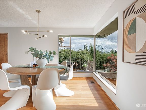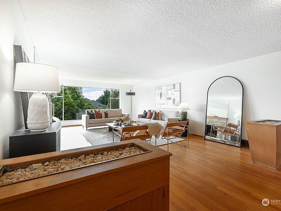 Calling all mid-century enthusiasts! Situated on a lush corner lot w/sweeping views of Lake Washington & Mt. Rainier, this expansive 4BR home is a true gem in a prime location. Iconic original mid-century elements throughout are sure to inspire the designer in you. Generously sized large living + dining rooms facing the views, eat-in kitchen opens to view patio w/access to yard + huge 2 car garage. Convenient main level 3 BRs, 1.5 BA. Daylight lower level has huge rec room, 4th BR, ¾ bath, bonus room + laundry. Two fps, hardwood floors- this home is hard to beat! Outdoor adventurers will love being blocks away from beautiful Seward Park & the lake + easy access to Light Rail for a seamless commute. Come live the Seattle mid-century dream!