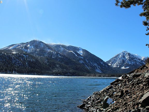 Premier Wallowa Lake frontage! Enjoy beautiful Wallowa Lake from the large deck of this 1800 sq.ft. chalet style cabin. Three bedrooms and two baths cabin on a large (21,050 sq.ft) lot. Open living area, master bedroom and bath on main level. Wood fireplace & wood stove. Wallowa Lake access, newer boat dock, newer roof and deck, storage buildings and lots of room to park.