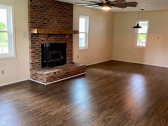 Welcome home to this updated 2 bedroom, 2 full bath home on 3.62 acres! This home has beautiful rustic charm and has been freshly painted throughout! It features brand new light fixtures or ceiling fans in every room! Gorgeous Mowhawk Luxury Vinyl Plank flooring was just installed in the great and dining rooms, which includes a lifetime warranty! Great room also features a bay window and a beautiful fireplace with insert. Besides new light fixtures, both full bathrooms feature new vanity's and toilets! Nice size laundry area in the middle full bath. Primary suite has the added rustic touches of barnwood along with a new ceiling fan and carpet! The kitchen has a breakfast bar, new stove and barnwood metal to complete its look! Lastly, enjoy relaxing on your large covered front porch that streches the whole length of the front of the home, on those nice warm nights or with your morning coffee! As you step off the porch and onto the property you will notice new guttering, a large fenced in back yard, as well as a large pasture area for recreation or some livestock. This home as so much to offer! Set up your showing today to check it out!