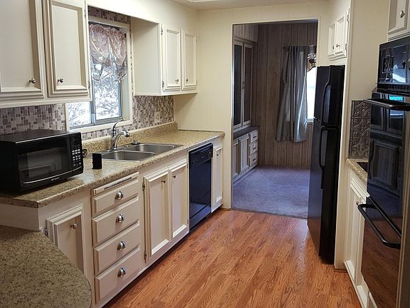 Well cared for and updated manufactured home on large private lot. 2 bedroom and 2 bathrooms with laundry room. Updated kitchen and large family and dining room. Large covered patio with fenced yard and 2 car detached garage. Central air. Can be shown starting June 6th. Small pets ok. 12 month lease. Tenant pays utilties