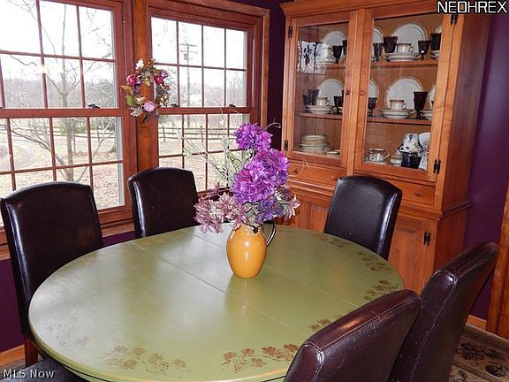 Located in the Heart of Ohio Wine Country on Wheeler Creek, this secluded 11.29 acre horse property offers a charming updated Cape Cod home, a 2 car garage with workshop, a 1/2 acre Vidal Blanc grape vineyard, a 120'x70' indoor riding arena with 7 stalls and a 180'x80' outdoor fenced paddock. The home features an updated eat-in kitchen with Kraftmaid cherry cabinets, granite countertops, ceramic floors and newer S/S appliances. In the cozy living room you'll find red oak floors, built in bookcases, a wood burning fireplace and unique woodwork throughout. Other features include a 1st floor guest bedroom or office with a bay window; a two tier wrap around deck with built in planters and a one year old spa. Home updates include a Lennox furnace in '02, roof in '06, windows in '07 -'11 and updated electrical. Located minutes from 1-90 and the Spire institute, this property sits discreetly next to the Winery at Spring Hill with a private spring fed well water source. Home Warranty included!
