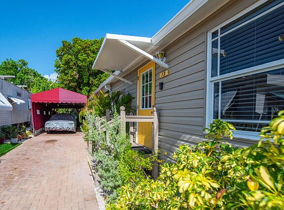 This beautiful and well maintained home is move-in ready! This 1 bedroom, 1 bath home offers an open living and kitchen area with a separate sitting area that would be perfect for an office space. The gem of this property is definitely the outside!! It has a screened in porch, covered parking and shed. The tropical backyard is an oasis for morning coffee, an evening cocktail and once viewed you'll appreciate the privacy and comfort this space provides. Community amenities include a boat ramp, boat slips available for rent, laundry & bath house. The clubhouse is also part of the amenity package available to owners for the low association fee of $180. The clubhouse features a full kitchen, restrooms and pool table indoors, and table tennis, dartboard and big screen tv under the expansive screen porch which can all be rented for private events as well. Community benefits also include 2 large tikis, one at the end of the canal at the clubhouse, and another oceanfront.