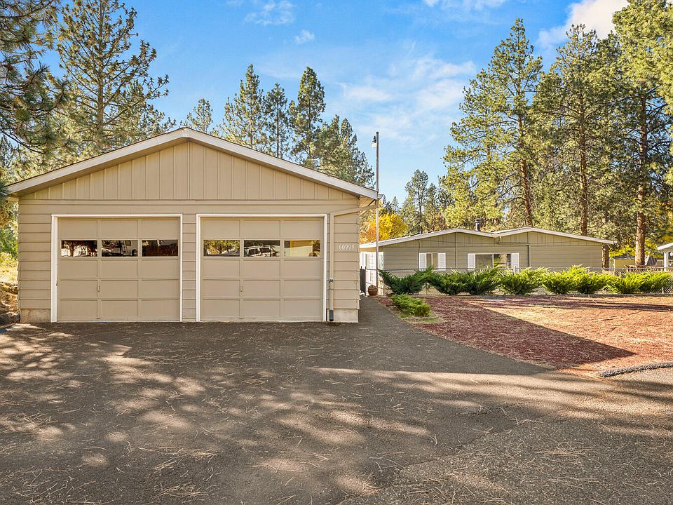 It's rare to find this much home for under $450,000 in Bend! This inviting property offers two bedrooms, two bathrooms, and a dedicated office on one of the largest lots in Romaine Village—over half an acre (.57). The open floor plan creates a warm, spacious feel, perfect for everyday living or entertaining. Step outside to enjoy a Trex deck overlooking your expansive yard—ideal for watching sunsets. A detached two-car garage includes a workshop area, and there's even RV parking with hookups. The primary suite features a generous walk-in closet, and the home is handicap accessible throughout. A truly exceptional value in a sought-after SW Bend location!