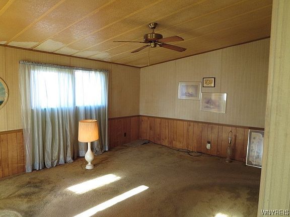 Spacious 3 bedroom 2 bath double wide mobile home with a 3 car garage. Kitchen includes appliances (as is) and features loads of cabinetry, counter space & opens to a 12 x 11 dining area. Living room has a half cathedral ceiling & chair rail. Washer & dryer also included (as is). Primary bedroom with private bath & walk in closet. Bedroom # 3 features 2 huge closets & sliding glass doors to a deck. 2.5 car attached garage with 1 car tandem. A rare find. Excellent storage with shelves. Furnace is 1 year young, hot water tank 5 years, central air is unknown. Property needs a new roof. If you are handy & can give this home the TLC it needs the future value will increase for you. Cash only buyers & can close quickly. Property being sold as is.