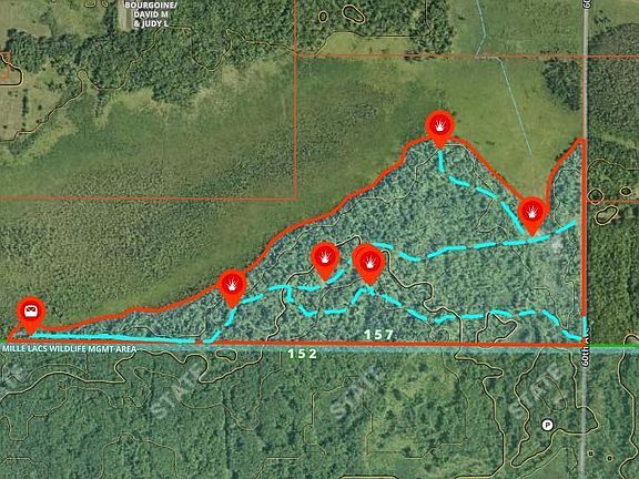 Welcome to this 251+ acre north woods property!! This large chunk of property is newly enhanced with trails and food plots that are turn key ready! Trail travels from the front to the very backside of the property. Three new hunting blinds have been placed over the food plots. 5 food plots are in place with clover and ready to hunt. Adjoining to this acreage is the awesome Mille Lacs Management Area! Mille Lacs Management Area has over 31,000 of acres of land with history of great genetics in deer and good numbers of quality bears. Grouse and turkey call this place home alongside of the deer and bear. Close proximity to Lake Mille Lacs where walleye fishing is some of the best in the state! Property is located in that perfect distance from the cities which allows for easy commutes.