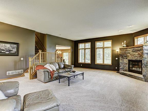 Set on a beautiful 2 acre treed lot, you will find this stunning 5 bedroom, 4 bath modified 2-Story home with Room-to-Grow-- Lower level is ready-to-finish with your personal touch and imagination (Family Room, Bar Room, Theater, 5th Bedroom, 3/4 Bath, etc). Great Room has a cozy corner fireplace that opens to the Dining and Kitchen that features hardwood floors, beautiful mission style cabinets, breakfast bar, and door to the Patio. Upper level has 3 spacious bedrooms and 2 baths.