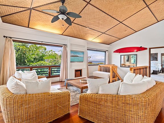 White sand beachesRenowned surf spotsTwo-car garageCalifornia king bedSmart tvHand-carved wooden trimWoven lauhala ceilings