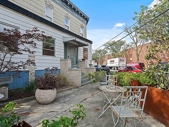 An exceptionally wide 22-foot basement with over seven-foot ceilings offers both interior and exterior egress and ample potential for storage, recreation, or a creative workspace. From the second-floor kitchen and rooftop, enjoy open views of the Manhattan skyline. A gracious three-season porch opens to a rare triangular side yard with Corten steel planters, creating a serene private outdoor escape.