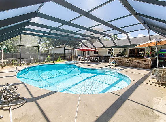 LARGE Saltwater Filtered POOL & HOT TUB with ENORMOUS Screened Enclosure for the OUTDOOR LOVER! Summer Kitchen w/ sink, mini-fridge, wine cooler & Bar Top for your Entertaining desires! Yard expands 75ft across the front & 150ft to the rear lot line with room to build garage or even mother-in law suite! Bonus Storage Building with Electricity! You will love all of the updates to include Tiled floors, Solid wood 6-panel doors and wood trim, double pane windows, tile accents around wood burning fireplace in Den, Large Laundry room with tons of cabinets and storage space. Expanded kitchen offers Breakfast Bar, Granite counter tops, custom birch wood cabinets to include pantry, GAS STOVE & Large dining area. French Doors Lead out to your Summer Abode! Home features Master Suit with double closets & exterior entrance to your private Pool & Hot Tub. Bedrooms in total with great closet space, updated tiled showers & modern vanities, guest bath has Jacuzzi! Most of the updates were completed in 2005 to include Tankless HOT WATER HEATER!!! Screened Sun Room Extends off the front of the home. This summer retreat includes tiled floor, fans & electrical outlets. Double driveway extends large enough for an RV, Boat or up to 8 vehicles! Just outside front door is a small fish pond! Don't forget to say hi to the Fish! You can see the community park from the driveway & just a few blocks away you can enjoy "Meigs Beach". Come play in the sand, enjoy fishing & a picnic, even launch your boat in the Bay! Call to see today! More photos Available! 2015 Heater for Outdoor Jacuzzi 2009 New Salt Water Filter 2016 New Screens on Enclosure 2005 Roof, Kitchen, Appliances, Tankless Hot Water Heater 2008 Bathroom Renovation
