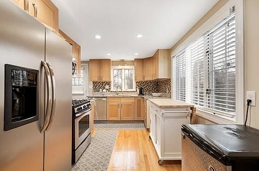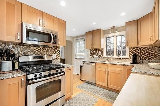 Amazing location & upgraded amenities, this home has it all! This meticulously maintained & oversized cape has many updates including new electrical, 3 zone heating/cooling system, water heater, irrigation system, and a beautiful kitchen with granite counterÂtops, stainless steel appliances and shaker style cabinetry. The first floor features a large living room, bedroom or office, full bathroom, and formal dining room off the kitchen. The second floor offers a generously sized master bedroom with marble tiled master en suite and an additional bedroom with ample closet storage. The lower level has in law potential as it is complete with its own entrance, living space with wood stove, full bathroom, laundry room, and kitchenette. The lower level steps out to a patio area featuring a large in-Âground pool complete with a sitting area, bar, and large deck that is perfect for entertaining. Solar panels installed on the roof allow for savings on monthly electric bills. This is a must see!