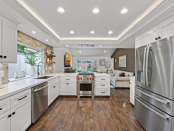 This beautifully maintained 4-bedroom, 2 bathroom single-story residence sits proudly on a spacious corner lot with Side access in one of the most sought-after neighborhoods known for its quiet charm, friendly community, and access to top rated school district in the area. Step inside to find a bright, open-concept floor plan with high ceilings, abundant natural light, and stylish high end finishes throughout. The gourmet kitchen features quartz countertops, stainless steel appliances, and plenty of cabinet space. The expansive primary suite offers a private retreat with a luxurious en-suite bathroom and generous walk-in closet, with oversized soaking tub and rain shower. Three additional bedrooms provide flexible space for a growing family, home office, or guest accommodations, while 2 full bathrooms ensure convenience for everyone. Enjoy indoor-outdoor living with a private, fenced backyard, covered patio and side access, ideal for entertaining, relaxing, or watching the kids play. The corner lot offers added privacy and curb appeal, with beautifully landscaped surroundings. Additional highlights include a 2-car garage, energy-efficient features, and proximity to parks, shopping, dining, and commuter routes walking distance to k-5 school.