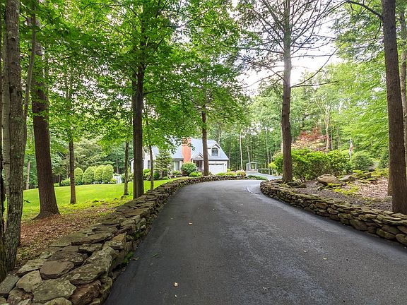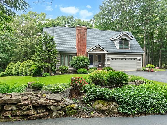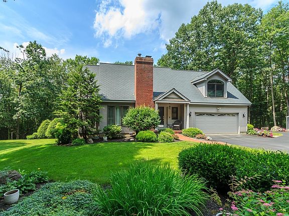 Welcome to 61 Barnard Hill Road! This beautiful cape is well situated on over 5 acres of land. Well set back from the road with a picturesque driveway lined with well maintained stonewalls as well as stunningly manicured garden beds. As you pull up you will notice a brick walkway lined with shrubbery, a wonderful 2 car garage & carport on its own concrete as well as a composite slate roof! As you enter the home you are greeted with an open living room with cathedral ceilings, a hallway to the kitchen, as well as a staircase to the 2nd floor. Prepare to be blown away with the elegant kitchen with maple cabinetry, quartz countertops, and stainless steel appliances. Your kitchen overlooks your dining/ family room which flows beautifully for entertaining. Looking for natural light? This home features large windows and skylights pulling in plenty of natural light. Off the kitchen / dining area you have a full bath that abuts your 3 season porch with gas stove. Rounding out the 1st floor you have a great office area for those who work from home. As you head up to the second floor you have a large primary suite with walk-in closet as well and updated bath with double vanity, tiled shower, as well as soaking tub. The 2nd floor also has two additional bedrooms & central 3/4 bath. 2 heating systems in place, one being newer forced hot air furnace with central ac as well as a supplemental wood burning furnace. The backyard walks out to your fenced gunite pool with patio surround!