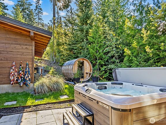 This NW modern blends striking architecture with spa-like amenities and unbeatable views. Walls of windows showcase jaw-dropping vistas of the Stuart Mountains and Enchantments, with showers designed to bring the outdoors in. Designed for year-round resort living, offering two master suites with luxe en suites, an upgraded chef’s kitchen with gas range and wine fridge, and top-of-the-line systems including central A/C and a tankless water heater. A spa wing features a sauna, new hot tub, and outdoor shower overlooking mountain ridge lines. Set on an estate-sized lot with no visible neighbors, there’s ample room to expand outdoor living spaces. Every detail of this home balances luxury, privacy, and access to four-season recreation.