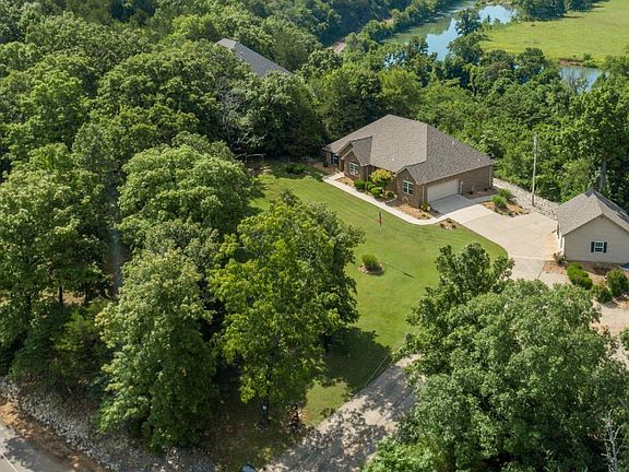 Charming Blufftop Beauty on Nearly 5 Acres! Welcome to your scenic dream home. This 2081 square foot all brick home offers the perfect blend of comfort, style and natural beauty. Home has 2 spacious bedrooms, 2 full baths and a dedicated office, perfect for the remote work or can easily serve as a third bedroom. The open floor plan is flooded with natural light, hardwood floors and a split bedroom layout for added privacy. The kitchen and bathrooms have been tastefully remodeled, offering modern appeal. Enjoy your morning coffee or evening sunsets from this bluff top retreat that overlooks the Spring River, while listening to the waterfalls below. Take an ATV drive right from the property to the river below or enjoy the miles of nearby off roading trails. The property includes a 2-car attached garage as well as a separate 26x24 fully insulated outbuilding. There were a new roof and outbuilding added in 2023. This bluff top beauty blends peaceful living with modern upgrades. Whether you're seeking a forever home, a quiet escape this property checks all the boxes. Home has 3 lots overlooking Spring River. Access to river is just a short distance from the home. Several upgrades have been completed in kitchen and both baths.
