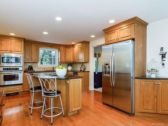 LOCATION! Highly sought at area of Manchester on Glastonbury line; a tree-lined neighborhood across from the Lutz Children's Museum and tucked amongst the reservoir area and golf course area; this home is now available for YOU to call it HOME. Charming home has all the bells and whistles while aesthetically giving a nod to farmhouse feel in the architectural details throughout the home. Large front to back fireplaced, hardwood floor living room adjacent to the welcoming foyer. Gorgeous kitchen remodel features large granite island, built-in microwave and oven; wine captain and counter top stone with exhaust fan. warm maple cabinets open concept to the dining area and flows nicely into the fireplaced family room. The family room opens to the pretty, stone floored three season porch overlooking the pretty backyard area with stone patio; in-ground pool fully fenced in and detached 1-car garage. Pretty stonewalls adorn the front and side yard of home. The 2nd level you will find the home's roomy bedrooms and full bath. The lower level is ready for further expansion; already has a partially finished area used for storage but with the fireplace would easily be a functioning, useful space! Home features 3 zones! The yard has pretty stone wall and manicured beds. This home is both warm and charming and would be a great fit for that turn-key buyer!! Roof replaced in 2018. House is generator ready too! Pro pictures coming by Saturday morning.