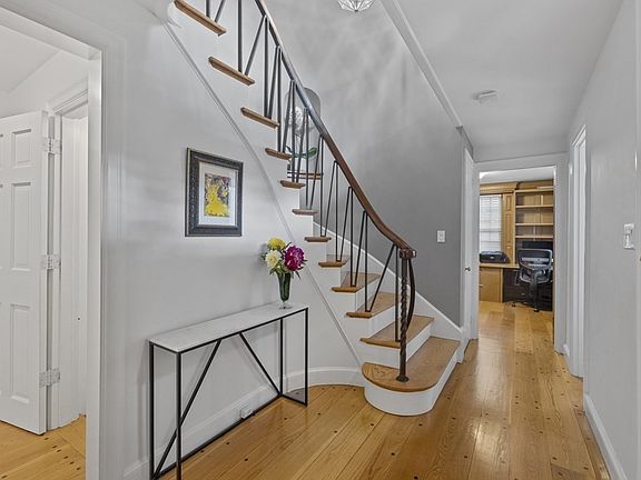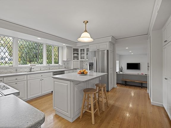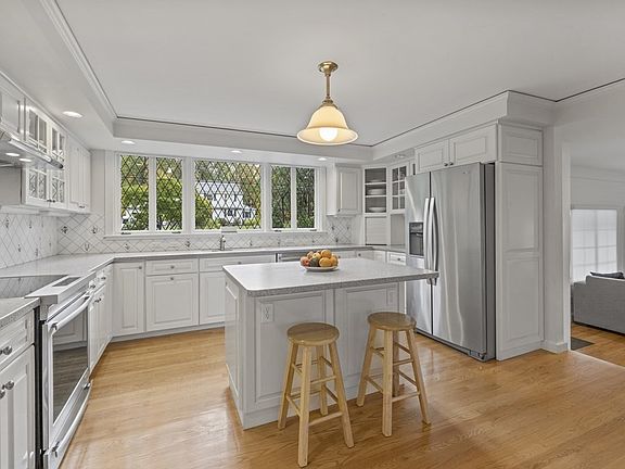 Classic brick colonial, think "Father of the Bride" setting in Follen Hill awaits new owners. Sitting on a beautiful half acre lot with a phenomenal private backyard, this house has touches of yesteryear and a whole lot of modern. The family room has a wall of storage, sleek and white, blending into the room, looks seamless. The study offers another space for homework/office/library space. A large dining room with french doors to deck overlooking backyard abuts a large living room with fireplace. Tucked behind is a sunroom with slate floor with more access to the deck and backyard. Centered is the kitchen, with white cabinetry and open to family room. A wood panel office and powder room complete the floor. Take the turned stairwell, a throwback to yesteryear upstairs to four bedrooms, the primary has an updated bathroom with steam shower and walk-in closet. The family bath is also updated. Lower level has a large playroom - current use, hockey rink, along with a full bath and storage.