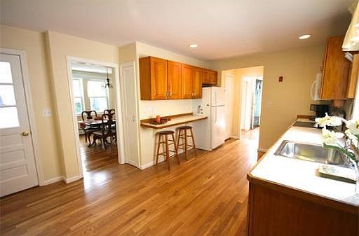 Classic dutch colonial with many original features abutting a large tract of town owned, conservation land. Private back yard with maintenance free deck leading into a newly remodeled sunroom with sliders and vaulted ceiling. French doors to living room, nice sized dining room. Eat in kitchen with hardwood floors throughout. Three bedrooms, finished basement. Walk to commuter rail and high school. Freshly painted and ready to move in!