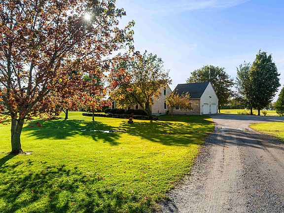 Nestled on a picturesque 4-acre lot, this charming Cape-style home offers the perfect blend of country serenity and modern convenience. Enter through the two-car garage into a spacious mudroom, leading to a beautifully appointed kitchen with an eat-at island and ample storage in the walk-in pantry. The kitchen boasts wood cabinets with crown molding and sleek countertops, while natural wood trim adds a touch of warmth throughout. The main floor features a sun-filled living room with gleaming hardwood floors and a large master bedroom with an ensuite bath. Relax in the sunroom and take in breathtaking views of sunrises over the mountains and sunsets over the lake. Upstairs, two generously sized bedrooms and a full bath await. The finished basement provides a versatile family room and two finished flex spaces for endless possibilities. Step outside to enjoy the peaceful country setting, complete with a patio perfect for gatherings, and a four-stall barn ready for animals or hobbies. Don’t miss your chance to view this stunning property—it won’t last long!