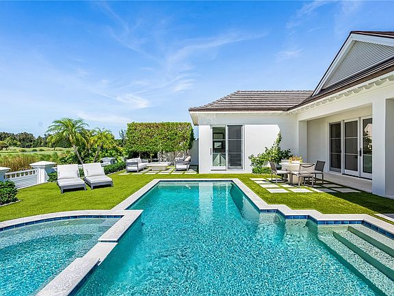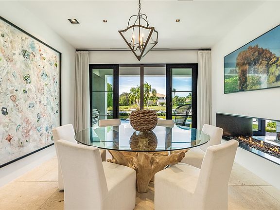 Stunning Orchid Island home with beautiful golf view of the14th fairway. Remodeled updates include impact glass, Imported Turkish limestone floors throughout, oak interior doors & an open kitchen with top-tier appliances & Quartzite counters. A beautiful cathedral wood ceiling accents the light and airy living room & a modern gas fireplace opens to the living & dining rooms. The spacious primary suite offers golf views. An expansive electric-heated pool with new spa, built-in grill adjoins a shaded patio & gas firepit perfect for entertaining & relaxing at home. Sizes approx./subj to error.