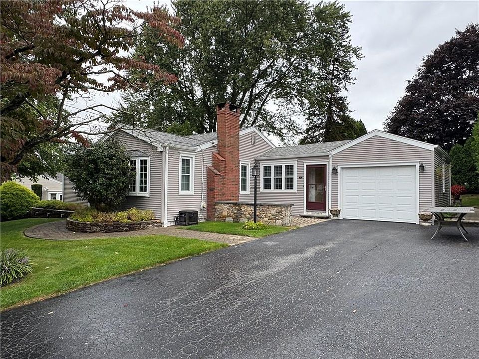 This Garden Hills ranch combines classic one-level living with modern updates and timeless charm. Enjoy the convenience of laundry on the main floor, with a second laundry area located in the basement. The home showcases gorgeous hardwood floors, an updated kitchen with granite countertops and stainless steel appliances, a separate dining area and a formal dining room with sliders to patio. and. The inviting living room features a wood-burning fireplace, while three comfortable bedrooms and a refreshed bath complete the main level. The garage has remote control, and the spacious mudroom offers a huge closet for all your coats, boots, and backpacks. Additional highlights include a brand-new one-layer roof, central air conditioning, replacement windows with custom plantation shutters, and a partially finished basement offering a second bathroom, family room, and ample storage. The outdoor space is truly spectacular, with an expansive backyard framed by a towering arborvitae hedge for ultimate privacy, a stunning stone paver patio bordered by elegant stone walls, in-ground sprinklers, and the convenience of city water and sewer.