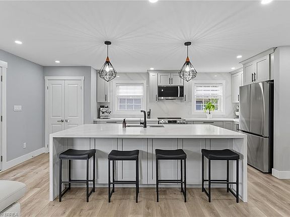 Welcome to 61 Clench Avenue, a beautifully updated bungalow nestled in the desirable community of West Brant. This 4-bedroom, 2-bathroom home has been thoughtfully renovated with modern finishes throughout, offering a true turn-key experience. Step inside to an open-concept main floor featuring a bright and spacious living area, a stunning quartz island, sleek stainless steel appliances, and ample room for family living or entertaining. Recent upgrades include new doors, furnace, A/C, updated electrical panel, garage door, and opener, giving you peace of mind for years to come .Outside, enjoy the convenience of a detached garage, a fully fenced backyard perfect for kids and pets, and a covered patio ideal for outdoor dining or relaxing evenings. Located in a family-friendly neighbourhood close to schools, parks, shopping, and everyday amenities, this home checks all the boxes.