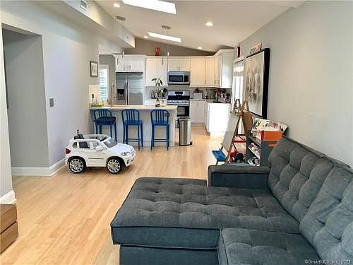 Modern and completely rebuilt house in central Stamford location Beautifully appointed home with open floor plan. Large designer white kitchen with Samsung Stainless Steel Appliances & Granite Countertops with Designer Tile Back Splash Bamboo floors and Italian tiles. Three fabulous Sky lights Designer lighting and custom blinds. Two First Floor Bedrooms, One Bedroom with A Vaulted Ceiling Second Floor Master Bedroom Suite with his and hers sinks, Herringbone Designer floor to ceiling Tile Elegant Glass shower enclosure Huge walk-in closet with California Closet-Style Built-Ins Plenty of room for your Peloton Close to all of Stamford's best Shops, and Restaurants Mid way to the Merritt Parkway and I 95. 7 minutes to Stamford train station