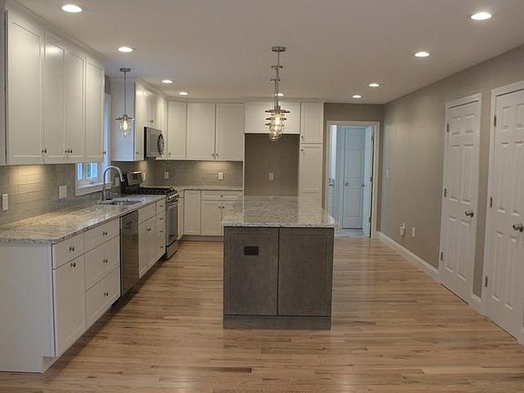 New Construction. Beautiful Colonial on corner lot. Two driveways, 2 car garage under, 10' x 12' composite deck with slider to kitchen, vinyl sided, gutters, partial fenced back yard. 2 high efficiency heat/AC units with 3 zones,1 for finished basement and first floor and one for second floor. Tank-less energy star FHA water heater, porcelain tile floors in baths, 9' x 9' master bath, 7' x 7' master bedroom walk-in closet, Master bedroom recessed lights, auto shut off water censor in laundry room, 13' x 13' basement patio, large basement playroom, glass door showers, gas fireplace in family room, beautiful kitchen cabinets with granite counter tops plus island cabinet. Oak Hardwood flooring through out house along with Oak staircase. Pull down stairway to attic for extra storage. Sprinkler system for the yard to maintain a nice lawn. Great location in the Pinehurst area close to Burlington. Quality built and a must see to appreciate this home.