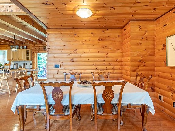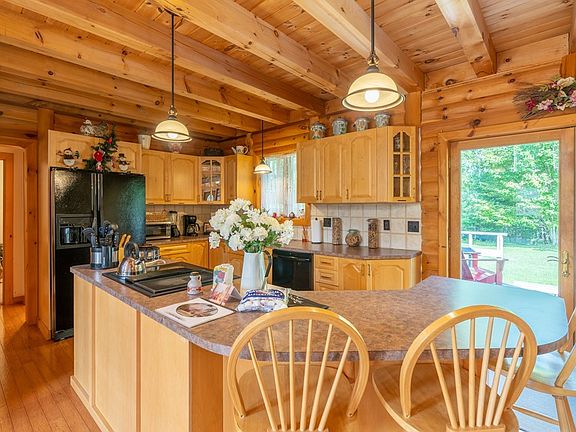 Enjoy living at this stunning Cedar Knoll log home with a spacious open floor plan showcasing a massive granite fireplace. Bright and sunny with floor to ceiling windows and a loft for additional sleeping or office space. The jetted tub and steam shower give you that spa feeling in this relaxing, well maintained home. The lovely open kitchen has a breakfast bar and Jen air grill plus access to the outdoor deck for dining. You can hear Potash brook running at the rear of the 2.41 cleared acre lot with plenty of space for outdoor activities or just to sit and enjoy the firepit in this quiet setting. Close to Whiteface Mt. for skiing & biking and the Wilmington beach and all the hiking trails the area offers. Restaurant and shops are close by. The house is being sold furnished except vanity in 2nd bedroom & captain chairs & trunk. The roof was replaced in 2021 and the in floor radiant keeps you warm. It has been a vacation rental with great reviews and family owned since built in 1993. 2022-08-30