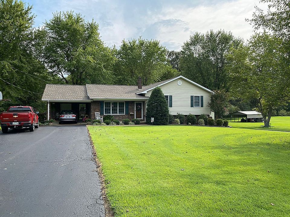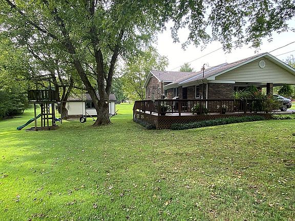 Beautiful home with an immaculate yard! This home is a must see! Open floor plan with beautiful engineered hardwood floors and updated kitchen. 3BR and 2BA. Bonus living area, laundry room, and storage room in the basement. The deck allows you to enjoy the 2 acres of incredible well maintained yard perfect for a family. Enough space for a garden or good football game! Lots of storage room in the attic and detached garage/workshop with power and wood burning stove. Additional aluminum carport for lawnmower or boat storage. Remodeled in 2000. New roof in 2018. Great location just outside city limits but still close to town and schools. City water and septic system.