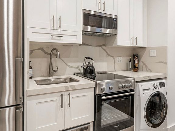 TRUE 2 BEDROOM, TONS OF NATURAL LIGHT! BEAUTIFUL GUT RENOVATED HOME! **PLEASE REACH OUT FOR VIDEO** This newly renovated apartment has plenty of charm with Exposed Brick and HIGH ceilings! Queen sized, Sun-Filled Bedroom with huge closets and overhead storage. Second room also fits queen-sized bed and can be used as a home office space! A spacious living room allows for a L-Shaped Couch, Chair and Entertainment Unit. Enjoy surround sound with complimentary built in Sonos Speakers in the ceiling! A well-proportioned brand new kitchen with stunning marble counter tops featuring a DISHWASHER, ALL STAINLESS STEEL APPLIANCES and WASHER/DRYER! Being located on 7th street between 2nd and 1st Avenue, you are situated in PRIME East Village surrounded by tons of top restaurants and bars. The apartment can be rented deposit free. Pay a small monthly fee to Rhino and never pay a security deposit again. Please ask us for more information on Rhino Call or email for a showing of this brand new PET FRIENDLY apartment!