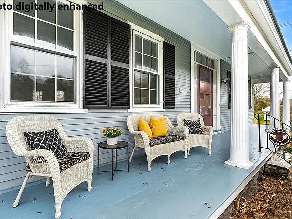HISTORIC CHARM MEETS VILLAGE LIFE! A STORYBOOK COLONIAL BY THE COMMON! Set just off the town green, drive past flowering hydrangeas and colorful foliage through the park-like setting to a bright red garage and barn. A pillared porch invites you to linger with morning coffee as neighbors pass by. Inside, sunlight dances across wide plank floors, crisp white millwork and timeless period details. Welcome guests in the foyer to the gracious living room where a decorative hearth sets a warm tone and oversized shuttered windows frame garden views. Enjoy quiet conversation in the parlor by a crackling fire before dinner. The dining room’s bay window and built in cabinetry elegantly display your plateware and treasured heirlooms. Warm yourself by the soapstone stove in the family room which flows into the kitchen as you enjoy charcuterie with the chef. Take the party to the front porch to survey the bustling common as concert music drifts through the air. On cooler days, head to the sunroom with a wall of windows that brings the outside in and a handy pass through window connects kitchen to porch for easy entertaining. Stroll to farmers’ markets, restaurants, bakeries and shops. A first floor primary with ensuite bath offers comfortable one-level living and a graceful staircase leads up to four bright bedrooms and full bath. There’s abundant untapped storage in the attic and barn that can be office and maker space as you require. QUINTESSENTIAL NEW ENGLAND SMALL TOWN LIVING!