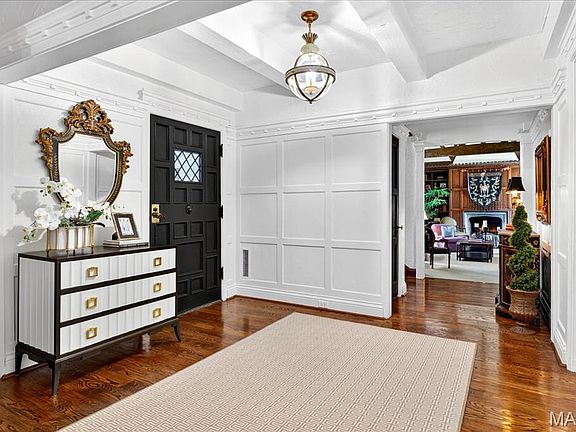Step into timeless sophistication as old world charm seamlessly blends w/ modern-day luxury in this exquisite 5397 sqft residence. Upon entering, you’re greeted by a grand LR featuring vaulted wood-beamed ceilings, leaded glass windows,& stunning boxwood paneling. The family room offers gorgeous custom wood shelving, soaring ceilings,& a stylish wet bar—perfect for entertaining. A striking see-through fireplace connects this space to the elegant billiards room. French doors open to both an open-air porch & a beautifully landscaped yard with a sparkling PebbleTec pool & patio. The formal DR impresses w/ its rich millwork, boxed panel walls, beamed ceilings, & gleaming hardwood floors—all w/direct access to the pool/patio, ideal for indoor-outdoor entertaining. The chef’s kitchen features a large center island, quartzite countertops,& abundant storage. It opens to a cozy hearth room w/ a fireplace & access to the rear patio. A 1st floor bedroom/office with a full bath, a laundry room,& a convenient 1/2 bath complete the main level. Upstairs, the gracious primary suite offers a generous walk-in closet & an elegant en-suite bath. 3 additional bedrms & 2 full baths provide ample space & comfort for family/guests. The partially finished LL includes a full bath & a rec area, perfect for a home gym or media space. Add'l highlights include a 3-car garage, over 1.1 acres of professionally landscaped grounds, and a stunning PebbleTec pool, landscape lighting & irrigation system.