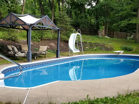 Raised Ranch: 3 bedroom, 3 bath, 3 fireplaces, 3 decks/patio, inground pool, mature trees, cul de sac