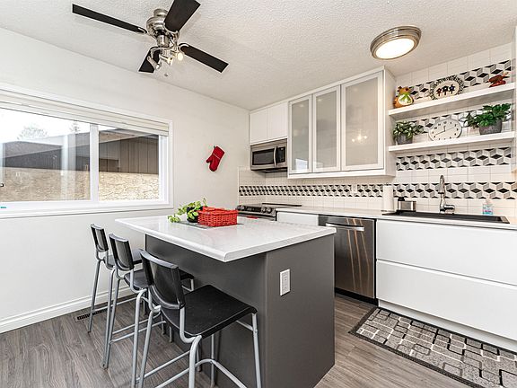 Welcome to 61 Forest Grove III, where style and comfort meet. Enjoy a beautifully renovated, sun-filled kitchen featuring ceiling-height soft-close white cabinetry, stainless steel appliances, a modern backsplash, and a generous island with ample storage. New laminate flooring flows throughout the home, including the fully finished lower level. The main floor offers an open-concept living/dining area and an updated ½ bath for your guests. Upstairs, you'll find two spacious bedrooms and a refreshed 4-pc bath. The primary suite is a relaxing retreat, easily fitting a king size bed and includes a large walk-in closet. The lower level adds a laundry room and a perfect media or workout space. Step outside to your private east-facing patio and yard, backing onto greenspace and mature trees, or stay cool inside with central A/C. The finishing touches are all new windows, a single garage and an extra parking pad. Close to schools, parks, and shopping and perfect for families and first-time buyers alike.