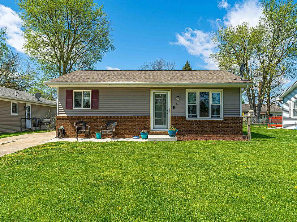 Totally renovated all electric turn key move-in ready two bedroom brick/vinyl sided bungalow style home! Interior boasts an open living/kitchen concept with newer vinyl flooring and great natural light, two generously sized bedrooms with newer carpeting, and a beautiful full hall bath. Kitchen features beautiful white soft close cabinetry, granite countertops, newer stainless steel appliances, and adjacent laundry facilities -- bathroom features nice recently installed tile flooring. Newer exterior vinyl siding, newer vinyl windows throughout, updated exterior doors, newer architectural roof, newer furnace and central air conditioning unit, fresh paint/flooring throughout, modernized fixtures -- the list goes on! Oversized one car detached garage, too. 61 Gavin Street, Lincoln is the perfect tidy and efficient virtually totally updated starter or retirement home -- this one will not last long!
