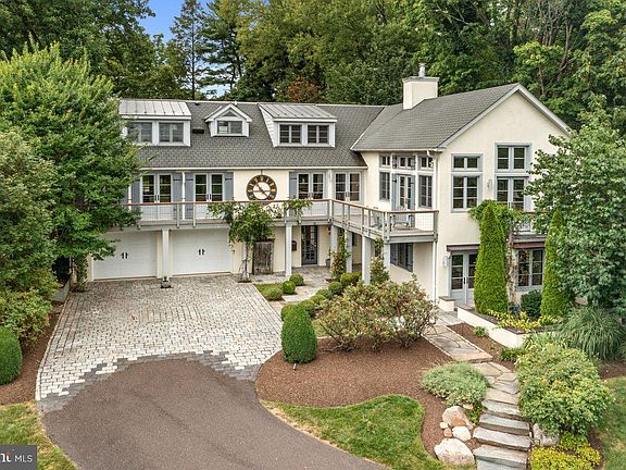 One of Bucks County's most coveted properties has come to to market in Doylestown Borough. For the discerning eye, this European Villa inspired home offers commanding views from every room overlooking the emerald fairways of Doylestown Country Club and of your own private world class garden. The home is move-in ready having been extensively renovated and improved from 2012-2020. The Main Level offers multiple entertaining and living spaces that seamlessly flow with each other and with the terrace and balconies. The impressive Living Room is both comforting and elegant with its elliptical ceiling, French limestone mantle and endless elevated views of nature. The Chef’s Kitchen boasts a 14-foot center island, professional grade appliances, and a highly useful Butler’s Pantry. The inviting Dining Room has a Turkish chandelier and custom cabinetry. The comfortable Family Room and the Kitchen provide access to an expansive bluestone patio, outdoor Kitchen, new resort style Saltwater Pool, and a dream inspiring 4-tiered garden. Also at the Main Level, the Owner’s Suite has a luxury spa bathroom and extensive custom closets. The Upper Level contains three boutique bedrooms with excellent views, custom baths, and useful storage. One of the bedrooms may serves as a second Owners Suite. The Ground Level includes a gracious Foyer, Office/Media Room, newly built Gym, full bath, and plenty of storage. Rooms at this level may easily work as a fully functional in-law suite. Some details of construction include radiant heat floors, Marvin French doors and windows, thoughtful mechanical systems, and a whole house generator. An elevator could easily be incorporated into the floor plan. Live in Doylestown Borough in your own private oasis. Walk to the Borough’s world class restaurants and shops. There is easy access to Philadelphia, Princeton, and NYC.