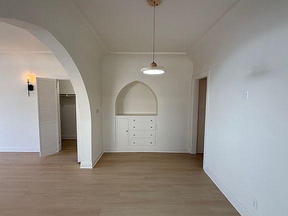Stunning Spanish style 2 bedroom 1 bathroom lower level unit in the highly desirable neighborhood of Belmont Shore. Gorgeous archways and built in organization throughout. Large bay window illuminates the home with natural light. Beautiful brand new vinyl plank flooring is accented by bright freshly painted walls. Brand new counter tops, farmhouse style sink and new cabinetry hardware in the kitchen. Kitchen comes equipped with brand new full gas cooking range (not shown), dishwasher and microwave. Beautiful tile detailing in the bathroom. In unit laundry room with hook ups! Single car garage included! Indoor cat or small dog okay.